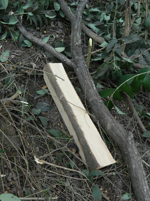 La madera utilizada lleva apenas dos años de secado en condiciones naturales, sin atravesar los procesos habituales de fraccionamiento y estabilización propios del material destinado al mercado. Sabemos que se deformará y continuará su curso de transformación incluso una vez convertida en objeto.