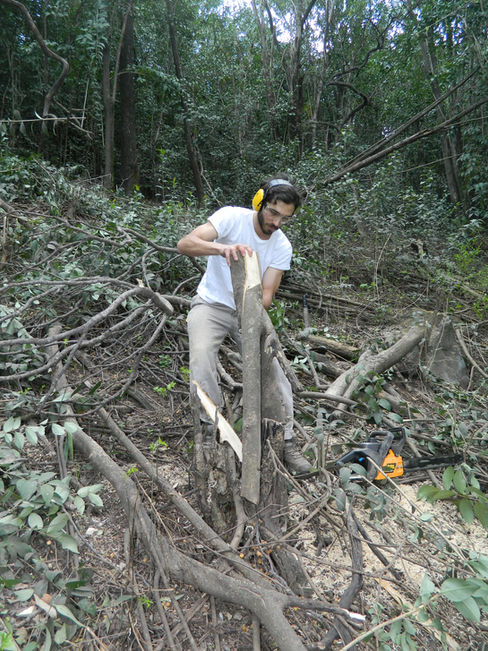 Nuestra exploración consiste en trabajar con madera no comercial, extraída directamente de su lugar de origen. Esto nos permite estar presentes en todas las instancias de creación del objeto, desde la extracción hasta el diseño y la construcción.
