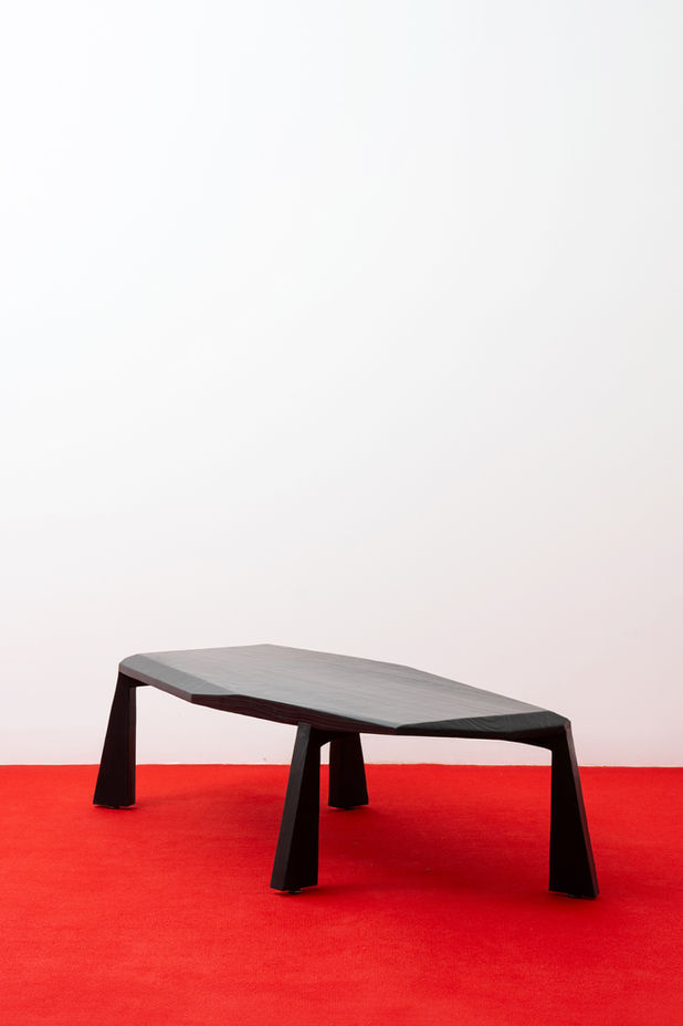 Solemos decir que esta mesa tiene una piel. Para construirla, aplicamos la técnica japonesa Yakisugi, que consiste en el quemado superficial de la madera. Este tratamiento resalta vetas e imperfecciones, haciendo visible lo que normalmente permanece oculto, aportandp textura, profundidad y contraste”